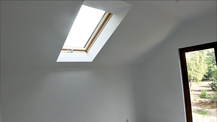 Charakterystyczne, wysokie skosy na poddaszu użytkowym.