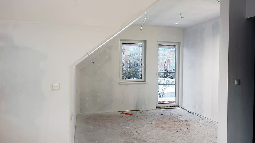 W domach szkieletowych Top Bud® wnętrza można wykańczać przed wykonaniem zewnętrznej izolacji termicznej i struktury tynkowej. To dodatkowo skraca czas osiągnięcia stanu inwestycji pod klucz.